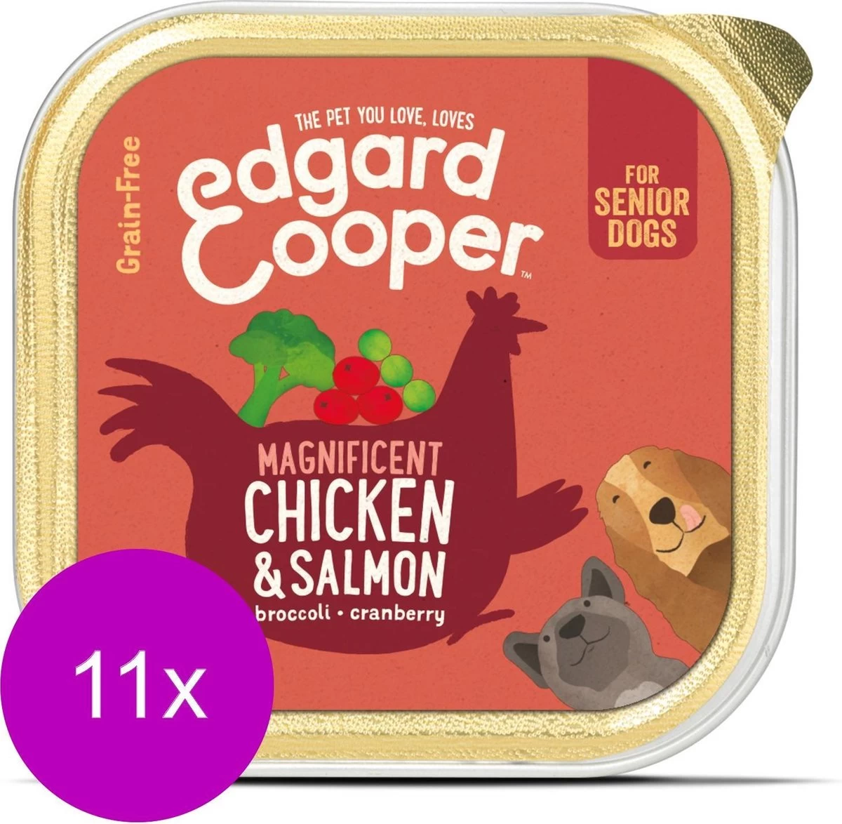 Honden zijn zot van vlees en van vis. En nog zotter van vlees en vis in één kom. Deze onweerstaanbare combo is een fantastische maaltijd voor oudere honden. Zalm bevat veel omega 3, (o)megagoed voor hersenen op leeftijd. En kip is mager en caloriearm: ideaal als je senior niet meer zo goed te poot is en minder calorieën verbrandt. Dit is bovendien een graanvrij recept waardoor het makkelijk te verteren is.