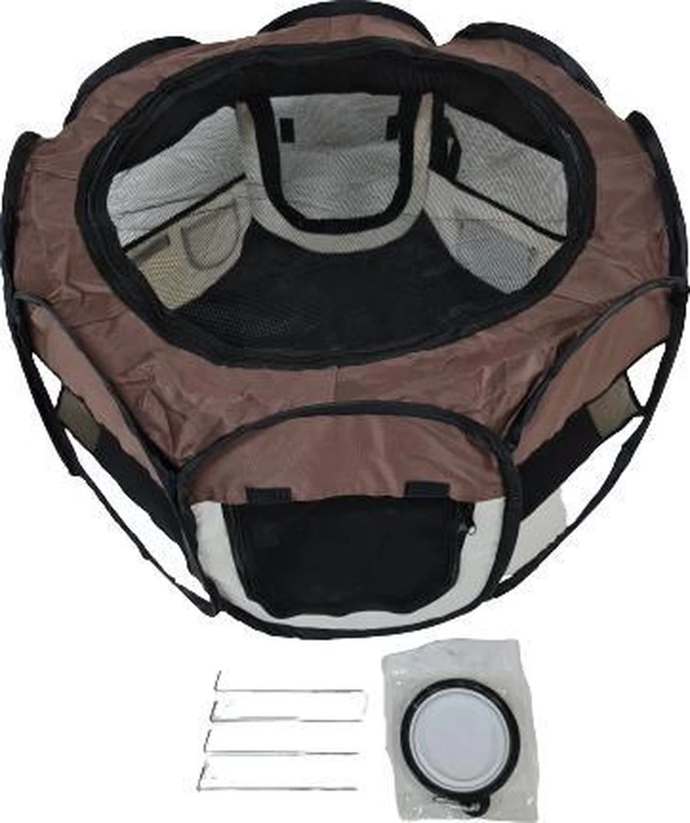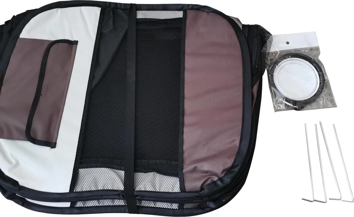 Dailyibed Opvouwbare Puppyren - Bruin - 115x115x58 Cm - Incl. Draagtas - Incl. Voederbak -Dierenwinkel 1200x1140 28
