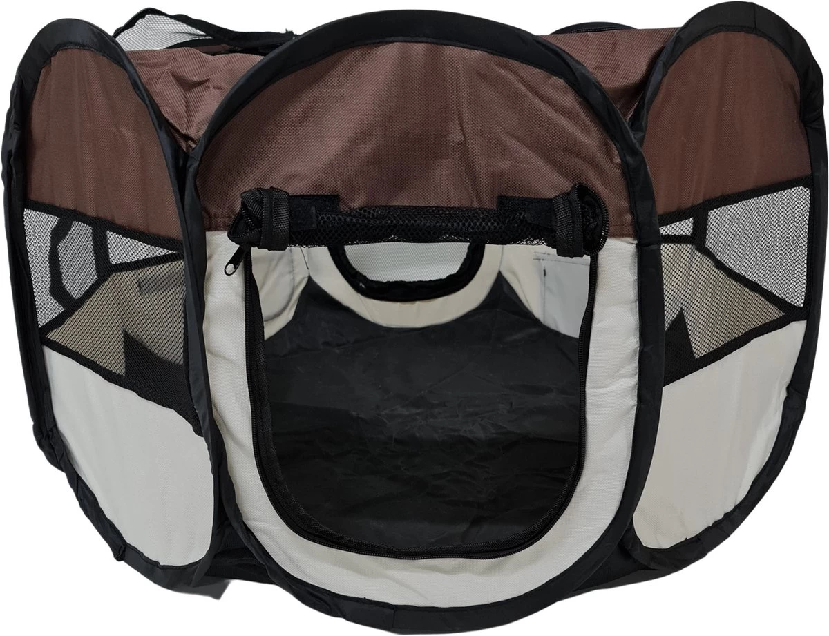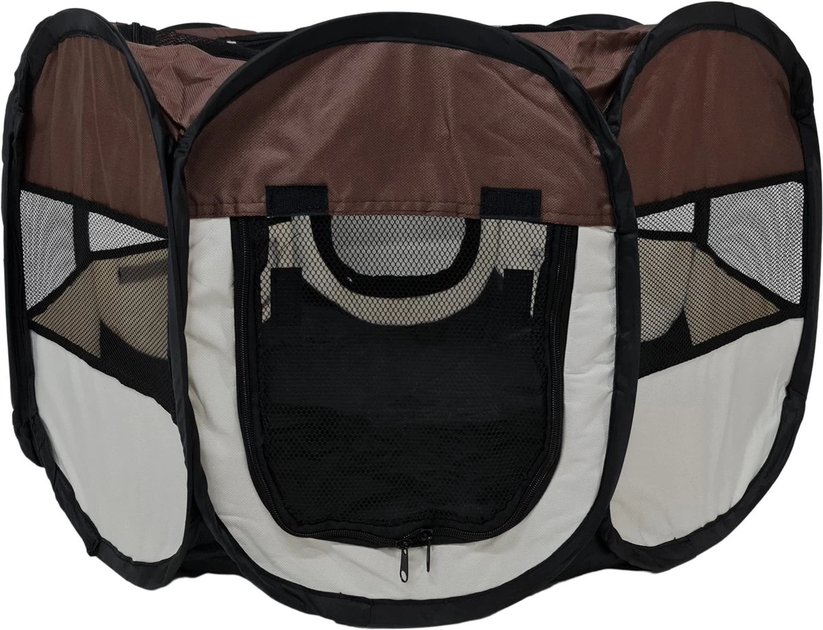Dailyibed Opvouwbare Puppyren - Bruin - 115x115x58 Cm - Incl. Draagtas - Incl. Voederbak -Dierenwinkel 1200x736