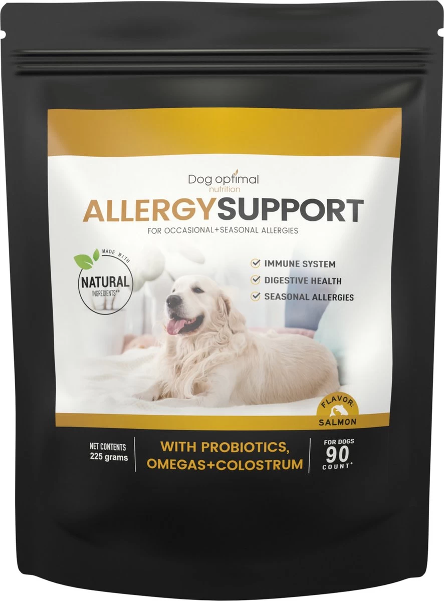 Met het supplement Allergy Support van Dog Optimal kunt u gelukkig veel ongemakken en gezondheidsklachten ten gevolge van allergieën verminderen en voorkomen op de lange termijn.