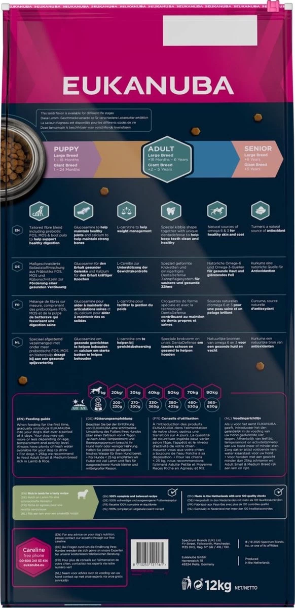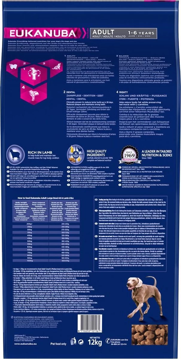 Eukanuba Dog Adult Large Breed Lam/Rice - 12 KG -Dierenwinkel 602x1200