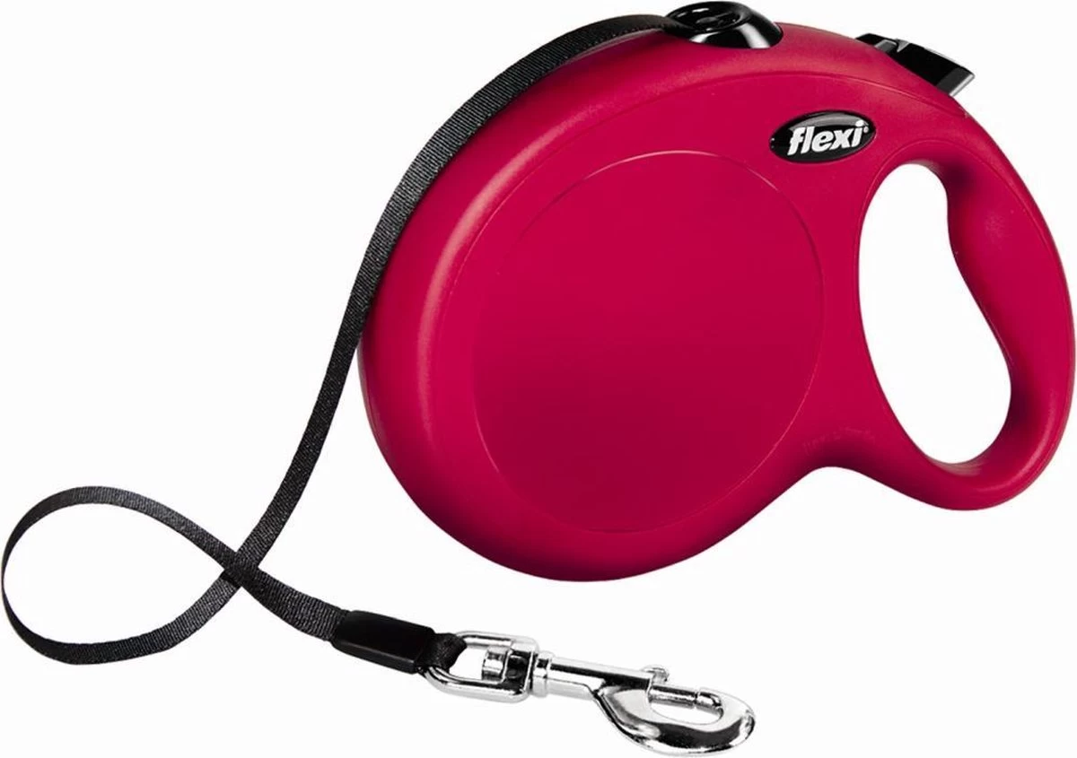 Flexi Rollijn New Classic Tape Large 8 m – Hondenriem – Rood – Tot 60kgFlexi is al jarenlang een gerenommeerde naam op het gebied van hondenlijnen met een oprolfunctie. De kwaliteit van Flexi wordt onder andere bepaald door de unieke dubbele remtechniek, de duurzaamheid van houder en lijn en het gebruiksgemak. Door het oprolmechanisme is de Flexi een ideale lijn om uw hond bewegingsvrijheid te geven, en daarnaast kort(er) te houden als dat nodig is.