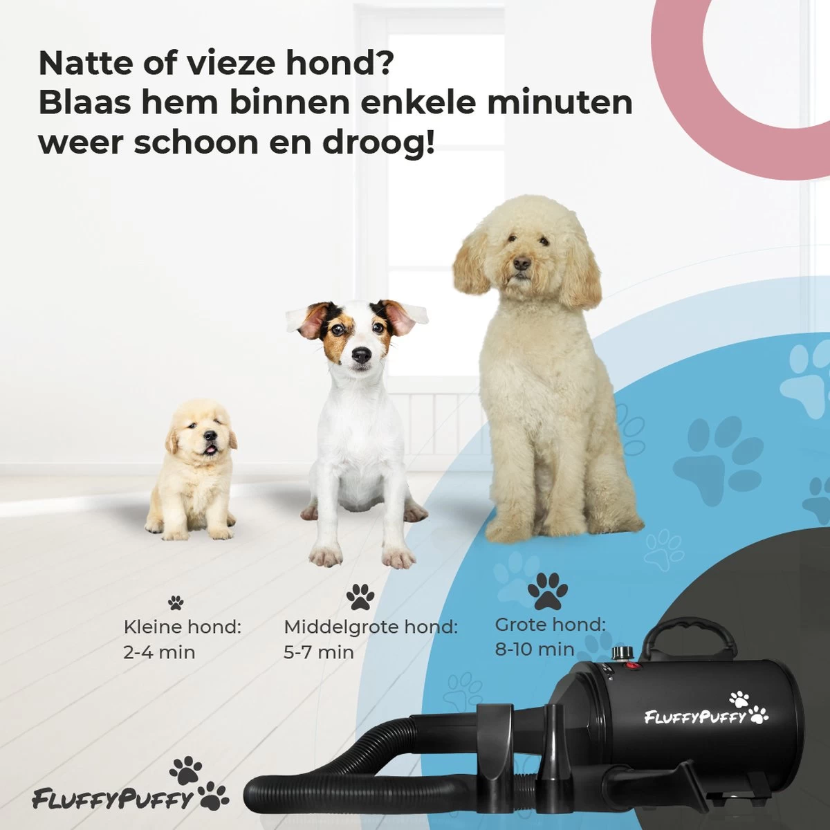 Met de FluffyPuffy hondenföhn maak je jouw hond niet alleen droog, ook verwijdert het alle losse haren en viezigheid uit zijn vacht zoals zand en modder.