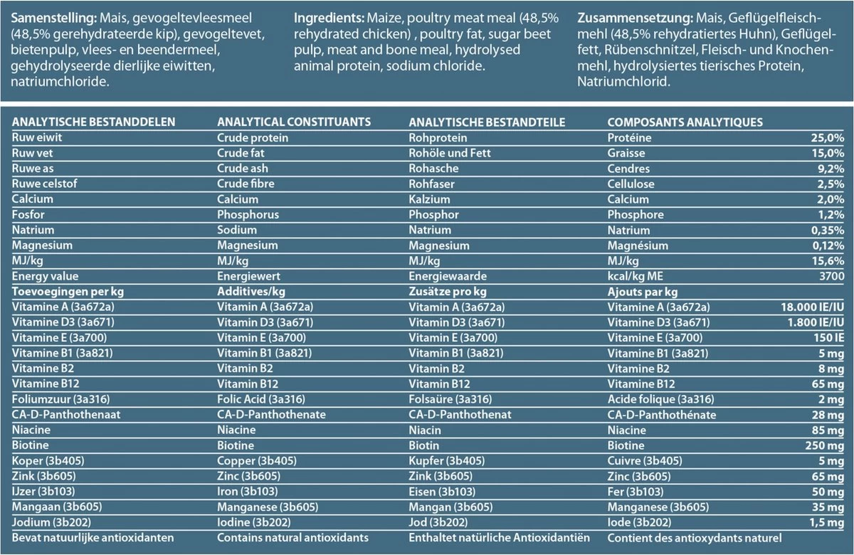 Fokker Regular K9 is een high premium hondenvoeding voor volwassen honden met een gemiddelde tot hogeactiviteit. Dit voer is dan ook goed geschikt voor sport honden. Fokker Regular K9 bevat hoog verteerbare natuurlijke ingrediënten die je hond fit en gezond houden en is energierijke voeding.