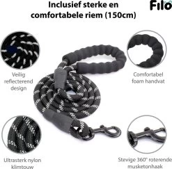 Filo Anti Trek Hondentuig Maat XL Met Hondenriem – Y Tuig Hond Verstelbaar – Hondenharnas Met Hondenlijn – Honden Tuigje – Leiband Hond – Hondentuigje – Extra Large – Riem