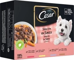 Cesar Selectie In Saus Maaltijdzakjes Honden Natvoer – Vlees En Groenten In Saus – 48 X 100 Gr