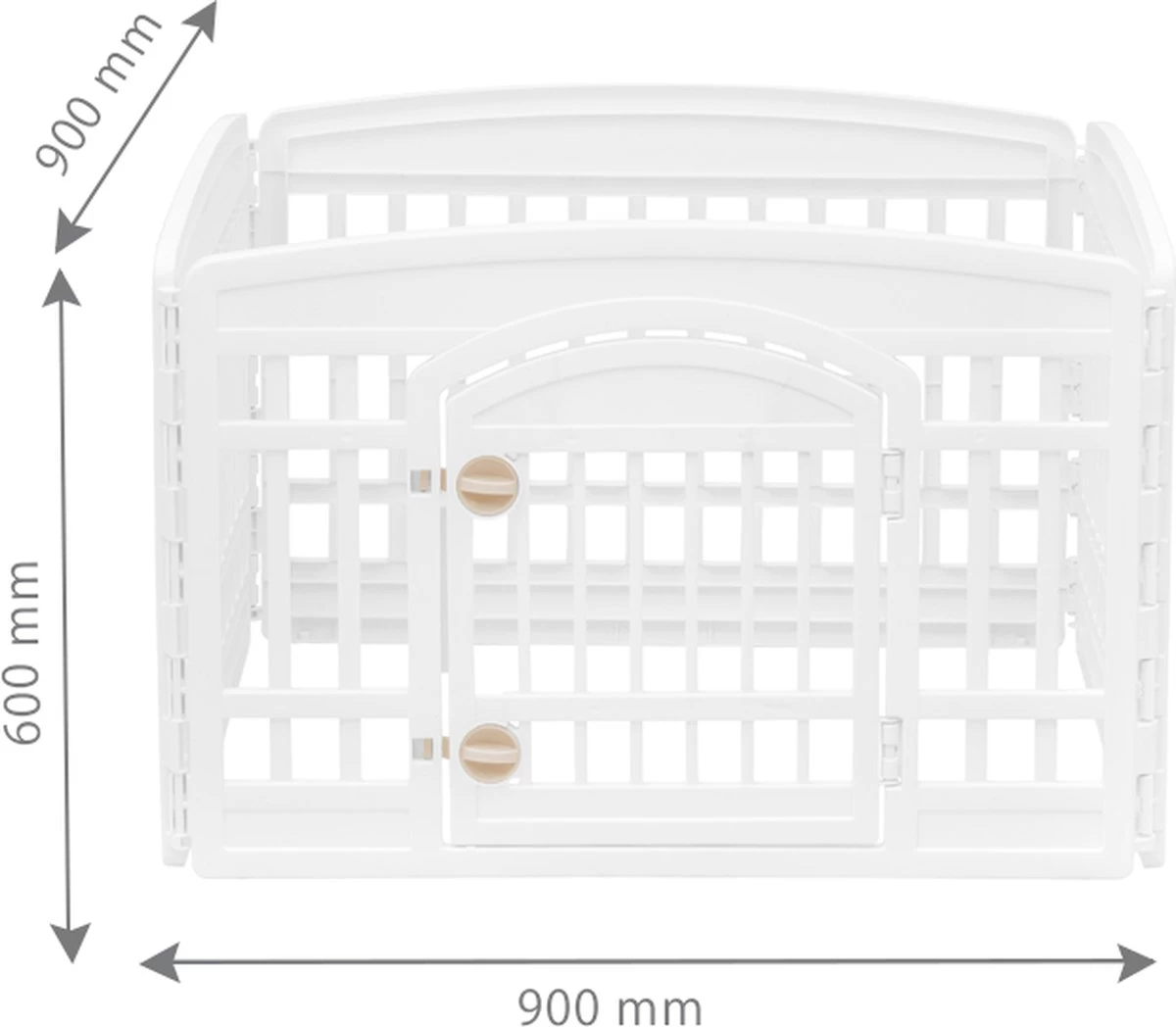 De Pet Circle is een praktische oplossing om een speel- en leerruimte te creëren voor uw hond. Door het lichte gewicht is de Pet Circle is eenvoudig in elkaar te zetten en te verplaatsen. Deze verplaatsbare afzetting is uitgerust met een deur met twee sloten en faciliteert genoeg ruimte om als slaapplek te dienen. De Pet Circle CI-604E is beschikbaar in de kleuren zwart en wit/beige.