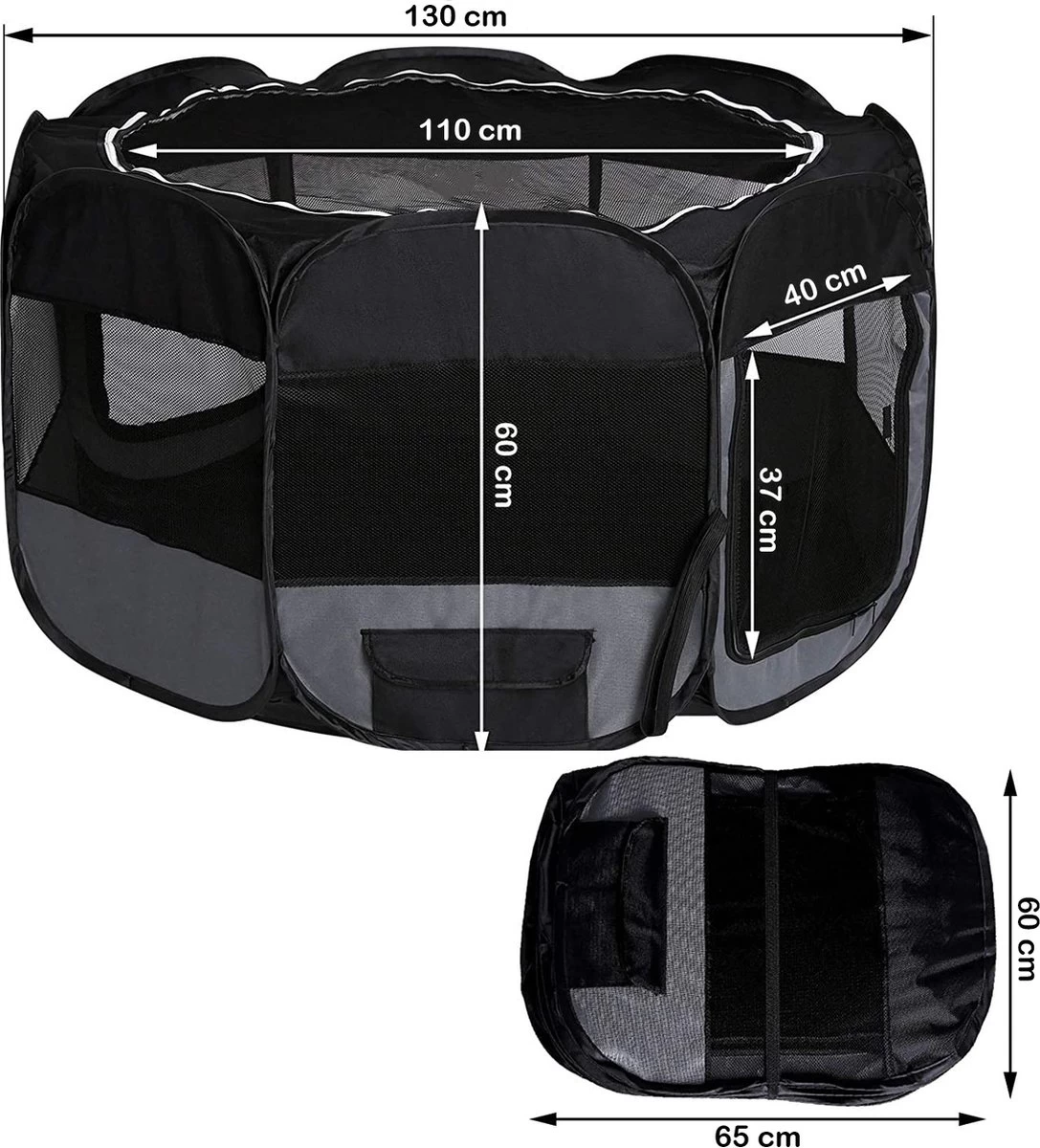 1x Puppyren 130x130x60 cm + Gratis dieren verzorgingsset t.w.v. €19,99 + draagtas en haringen pinnen