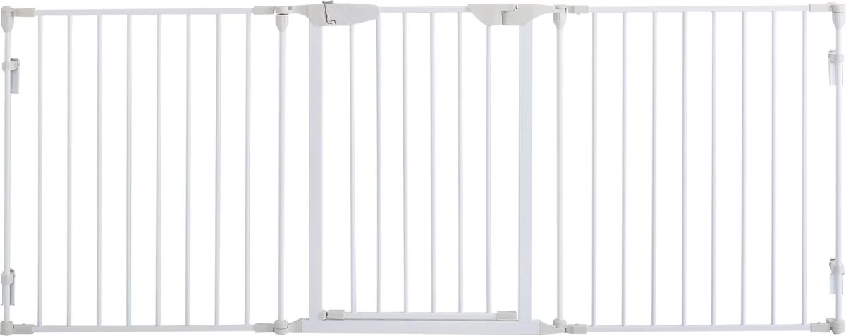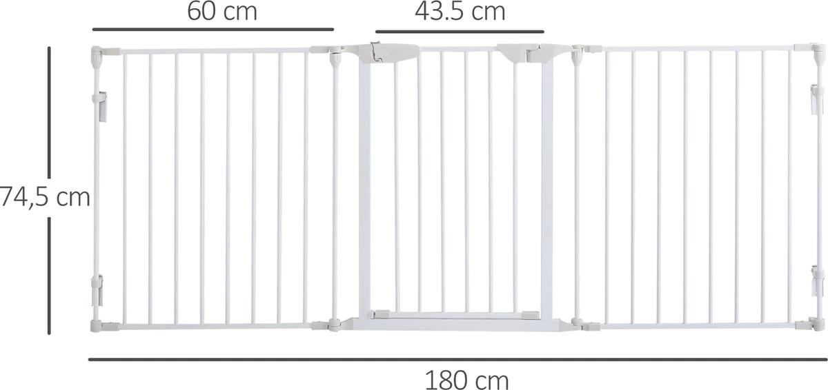 Dit hondenhek van PawHut is ontworpen om een veilige en comfortabele ruimte te creëren voor je dierbare harige vrienden. Het kan worden gebruikt als dierenbox, veiligheidshek, afscheiding voor de kachel en de kerstboom, en zelfs als scheidingswand. Dankzij het inklapbare design kan het hek gemakkelijk worden vervoerd en opgeborgen als het niet wordt gebruikt. Geef je huisdier een thuis met deze box! Eigenschappen: · Kan aan de muur worden gemonteerd met behulp van de meegeleverde accessoires · Kan worden gebruikt als kinderbox, veiligheidshek, afscherming van kerstboom, en kachel, of worden ingezet als scheidingswand, etc. · Het hek sluit automatisch als de openingshoek kleiner is dan 90° en blijft open als deze groter is dan 90° (het hek sluit niet als de hoek kleiner is dan 15°) · Dit veiligheidshek voor dieren kan in elke gewenste vorm worden gezet in een L-vorm, U-vorm, etc. · Trek de knop terug en til hem op om de deur te openen · Sterk metalen frame met gepoedercoat oppervlak, niet giftig, duurzaam, gaat jarenlang mee · Inklapbaar design voor eenvoudig opbergen en vervoeren · Geschikt voor kleine en middelgrote honden Technische gegevens: · Kleur: Wit · Materiaal: Metaal, kunststof · Afmetingen volledig uitgeklapt: 180 L x 3 B x 74,5 H cm · Afmetingen opgevouwen: 60 L x 7 B x 74,5 H cm · Afmetingen per paneel: 60 L x 3 B x 74,5 H cm · Afstand van de hekken: 5,8 cm · Aantal panelen: 3 · Omvang van de levering: 1 x Deurafscherming · Verzendbriefje: Geen verzending naar Nederlandse eilanden.