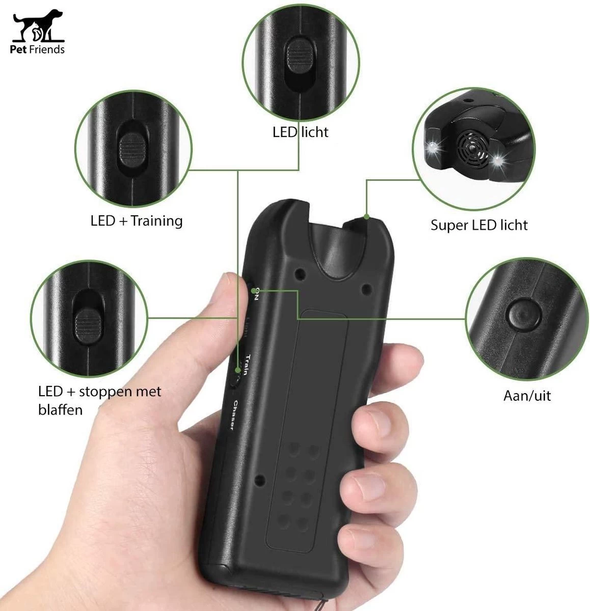 De Pets Friends anti blaf apparaat is voorzien van twee LED-lampjes die als zaklamp dienen voor als je in het donker met de hond gaat lopen.