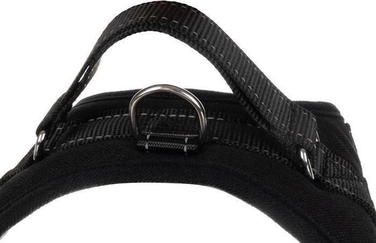 EENVOUDIG AAN TE PASSEN – waardoor het mogelijk is om de maat snel aan te passen aan de omtrek van de nek en borst van uw huisdier. Het harnas is ook uitgerust met een extra handvat en een koordhaak.