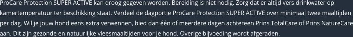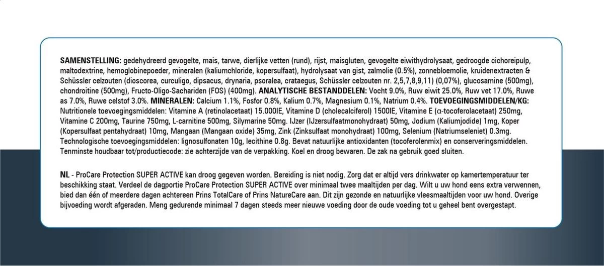 Prins Procare protection superactive is een geperste voeding speciaal voor opgroeiende of volwassen honden van middelgrote of grote rassen die bovengemiddeld actief zijn.