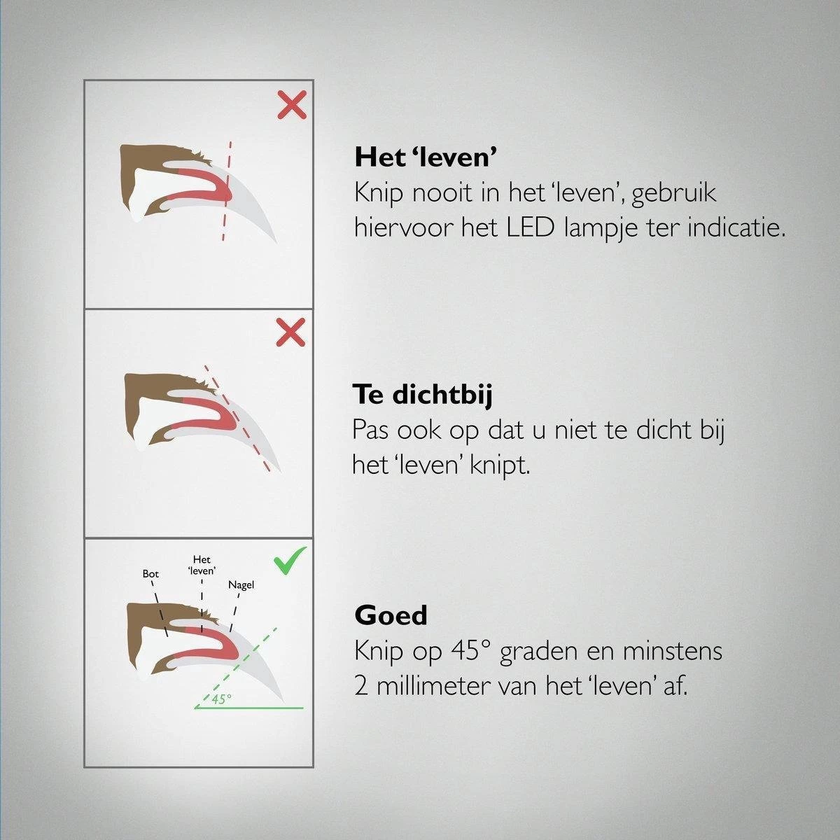 Geen pijn voor uw huisdieren door de LED-lampjes waardoor je duidelijk ziet waar je moet knippen