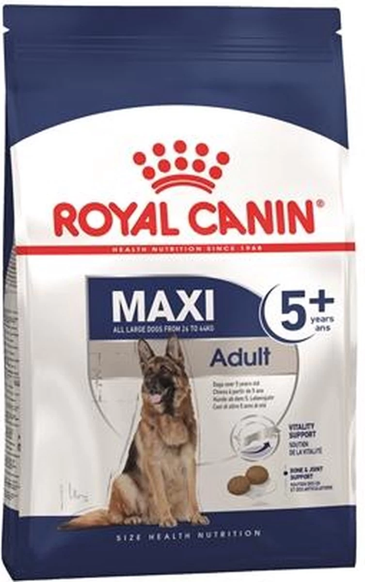 Je grote hond is gezond, toch? Of zou hij nog vitaler kunnen? Maxi Adult 5+ van ROYAL CANIN® is speciaal voor de grotere hond vanaf 5 jaar. De uitgebalanceerde voeding is aangepast aan de voedingsbehoefte van ouder wordende honden.