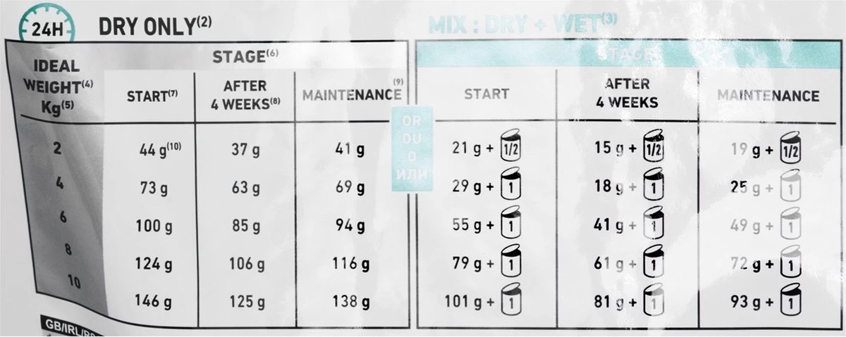 Door de kleine brokgrootte is deze voeding geschikt voor kleine honden lichter dan 10 kg.