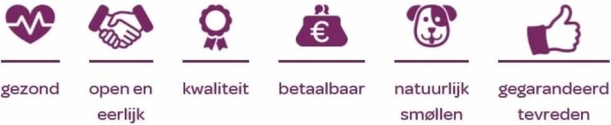 | Productkenmerken diervoeding | Geen kunstmatige smaakstoffen / Geen kunstmatige geurstoffen / Geen kunstmatige kleurstoffen |