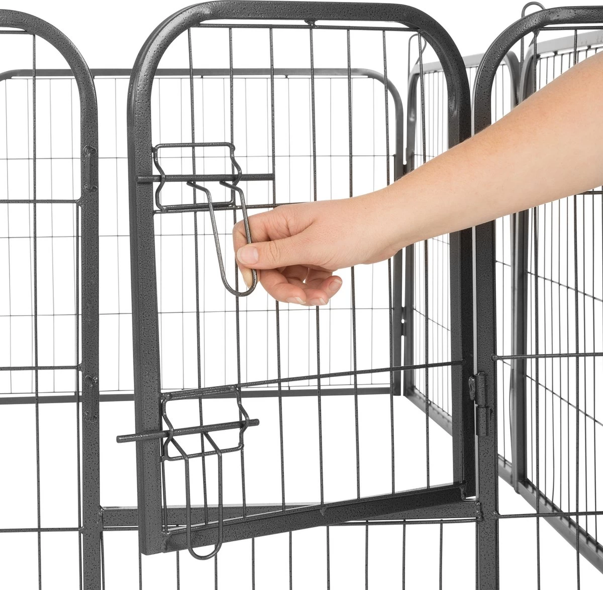 Deze kwalitatieve, stabiele puppyren is je praktische metgezel bij het grootbrengen van uw kleine schatjes. Puppy’s hebben de klok rond behoefte aan een liefdevolle verzorging. Opdat de kleine puppy’s zich ook eens kunnen bewegen zonder je voortdurende aandacht is er deze praktische puppyren. Deze puppyren beschikt over verschillende elementen die praktisch met stangen met elkaar verbonden zijn en naar believen geordend kunnen worden. Door de hamerslaglak is de ren beschermd tegen invloeden van buitenaf.