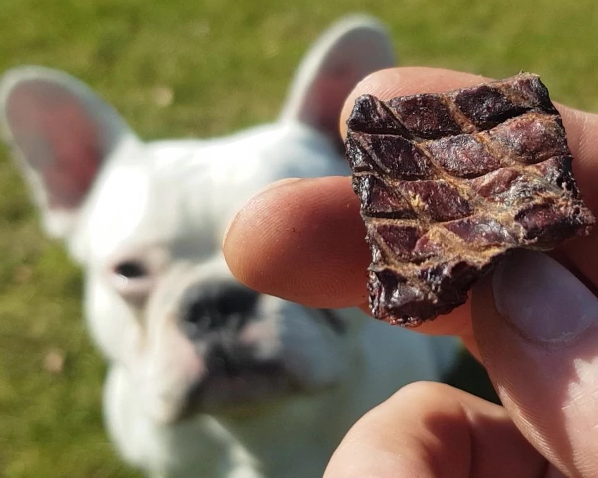 De snackblokjes zijn gemaakt van Runderlong en hebben een geur die honden nauwelijks kunnen weerstaan. Bij het ruiken van de hondensnacks zal jouw hond al opveren. Het formaat van de blokjes is ongeveer 3 bij 3 cm, waardoor ze vooral geschikt zijn voor grotere honden. Voor kleinere honden is de snack namelijk al snel iets te groot.