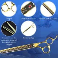 Scharenset Hond – 8-Delige Scharenset – Hondenschaar – Trimset – Trimschaar Voor Honden – Huisdier Knipset – Effileerschaar Hond – Goud