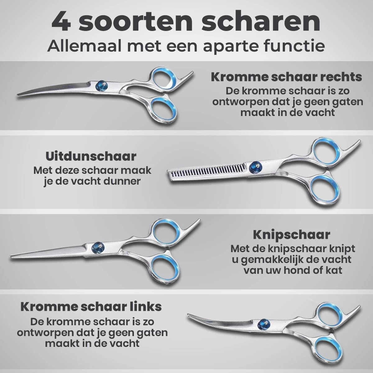 VoordeelShop 7-Delige Huisdier Knipset Met Etui – Trimmen Hond – Honden Schaar – Effileerschaar Hond – Huisdier Trimmer – Huisdier Knippen – Knipschaar Haar – Haar Schaar – Kapper – Kapperset – Scharenset