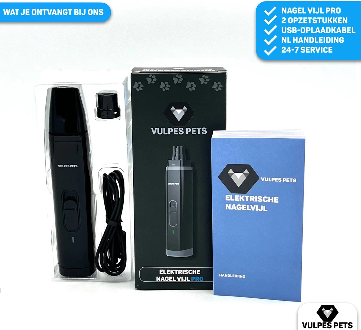 Het vijlen van de nagels van je hond of kat is altijd een vervelend klusje en iets wat goed, zorgvuldig en veilig moet gebeuren. Vulpes Pets® heeft daarom een elektrische nagelvijl ontwikkelt, waarmee je snel, effectief en vooral veilig, de nagels van je huisdier kunt vijlen.